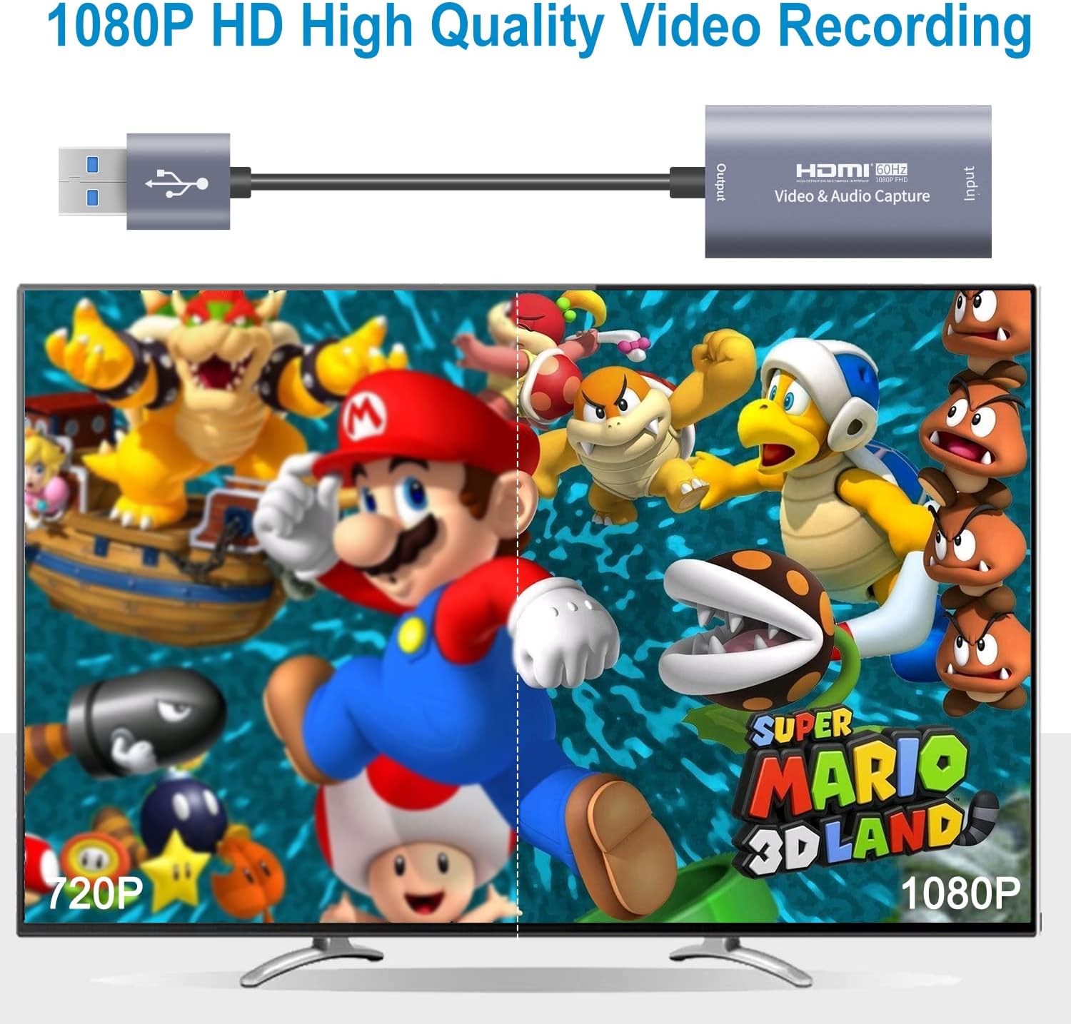 【1080P 60FPS Switch Capture Card】 The switch capture card is up to 4K@30Hz High Definition Input, output max resolution 1920×1080p@60Hz. Based on the USB 3.0 high-speed transmission port, record HD 60 fps videos directly on your hard drive with low latency, great for transfer audio and video signals to a computer or smartphone for preview and storage