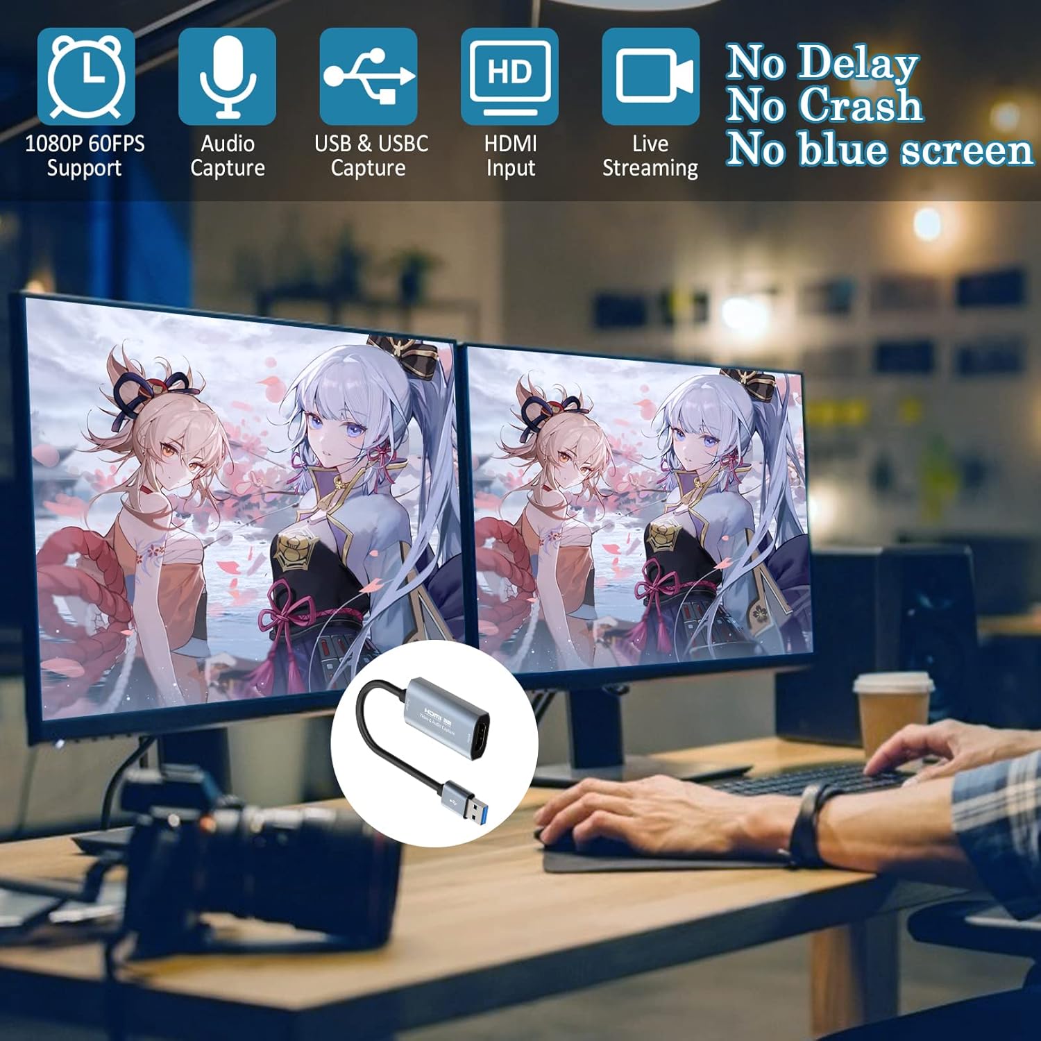 4K Video Capture Device: The highest input can support 4K. The output end of the product is USB3.0/M, and the highest support 1080P 60HZ code rate 192Mbps high-definition acquisitionStrong compatibility: This video capture card can be working on several Operating Systems and various devices: Windows, Mac OS, Linux, Android, Laptop, Nintendo Switch, TV BOX, HDTV etcPlug and play: Works with popular streaming software such as OBS Studio, easily streams to Facebook/YouTube/Twitch