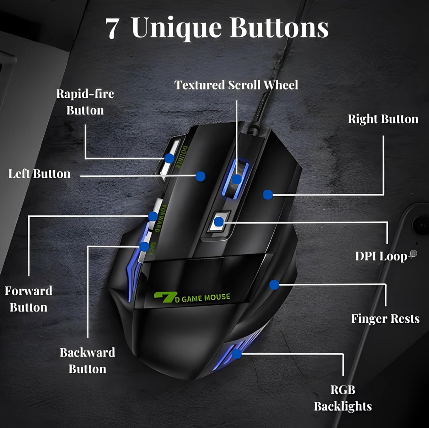 【7 Programmable Macro Buttons】Customize your gaming setup with 7 dedicated macro buttons, perfect for executing complex commands or shortcuts at a single click, maximizing in-game efficiency and performance.