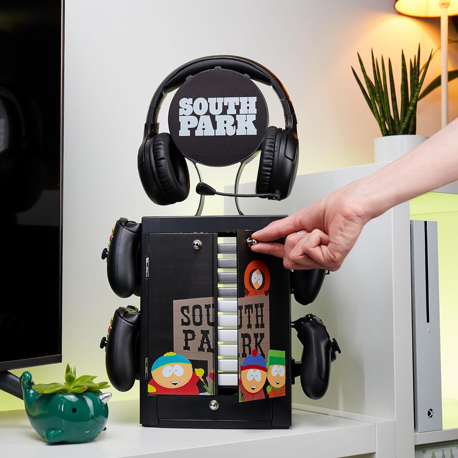 Numskull Official South Park Gaming Accessory Locker & Storage Stand – Holds 10 Games/DVDs, 4 Controllers, Headset, and Accessories – Durable & Compact Organizer – Official South Park Merchandise