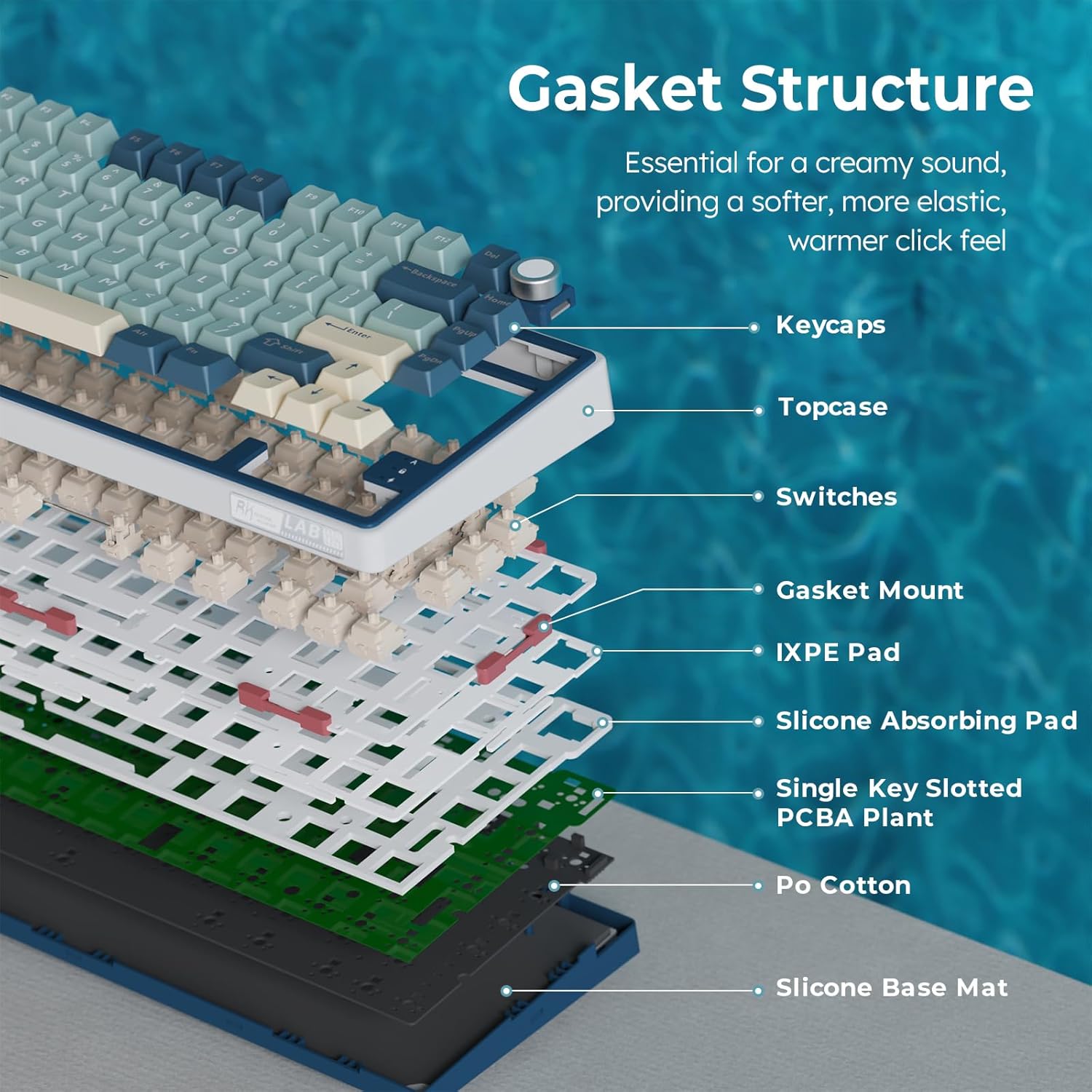 75% Gasket Mount Mechanical Keyboard Wireless: This 75% keyboard mechanical features a gasket structure incorporating five layers of sound-absorbing material. It adopts poron cotton for cushioning between the keyboard’s PCB board and casing, effectively reduces key noise and vibration, optimize switch sound quality, and provide better typing experience, perfect for your daily work and gaming needs