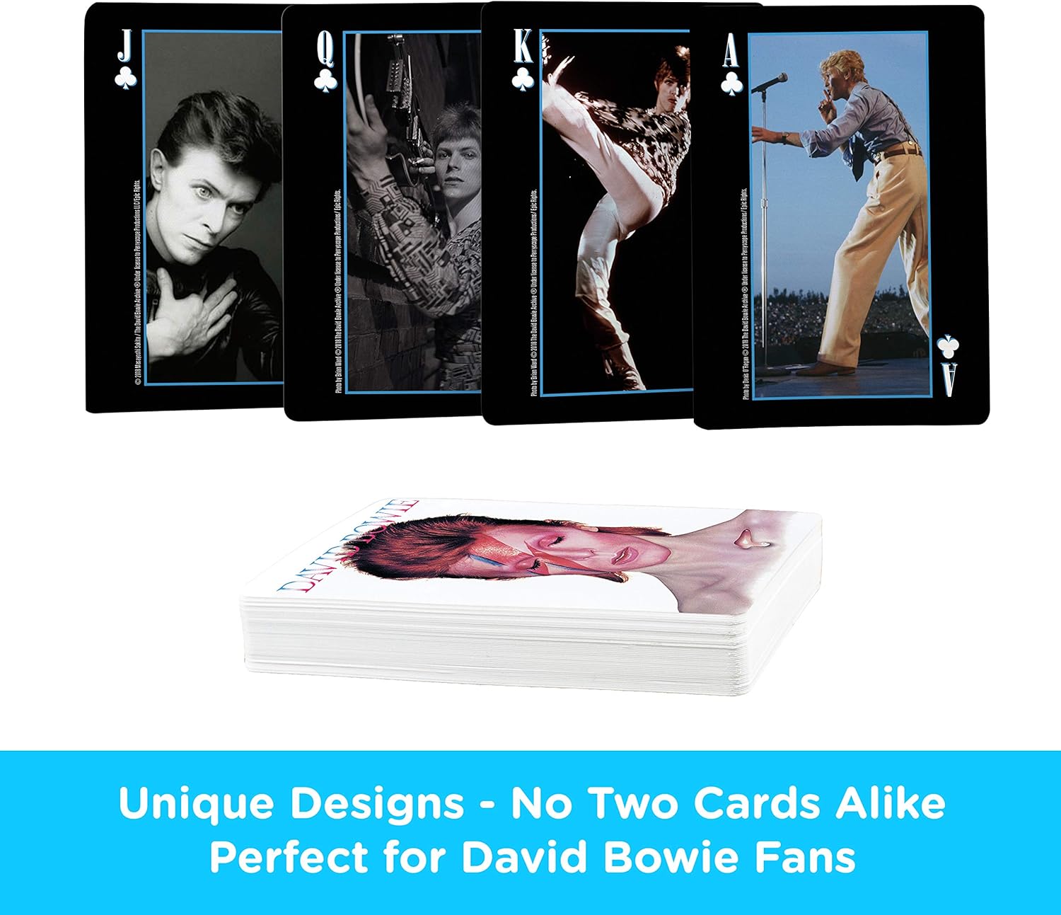 100% OFFICIALLY LICENSED DAVID BOWIE MERCHANDISE: This deck of David Bowie playing cards is designed by AQUARIUS and officially authorized by Perryscope. They’re the perfect piece of David Bowie memorabilia to add to your collection