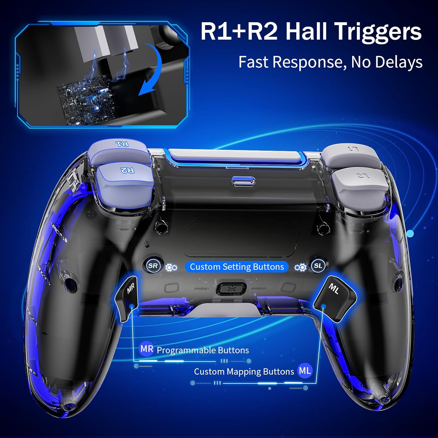 【Macro Programming for Enhanced Control】: Unleash the full potential of your gaming skills with the macro programming feature. Customize button functions to suit your playstyle, transforming this controller into a versatile and paddle-equipped accessory for your PS4.