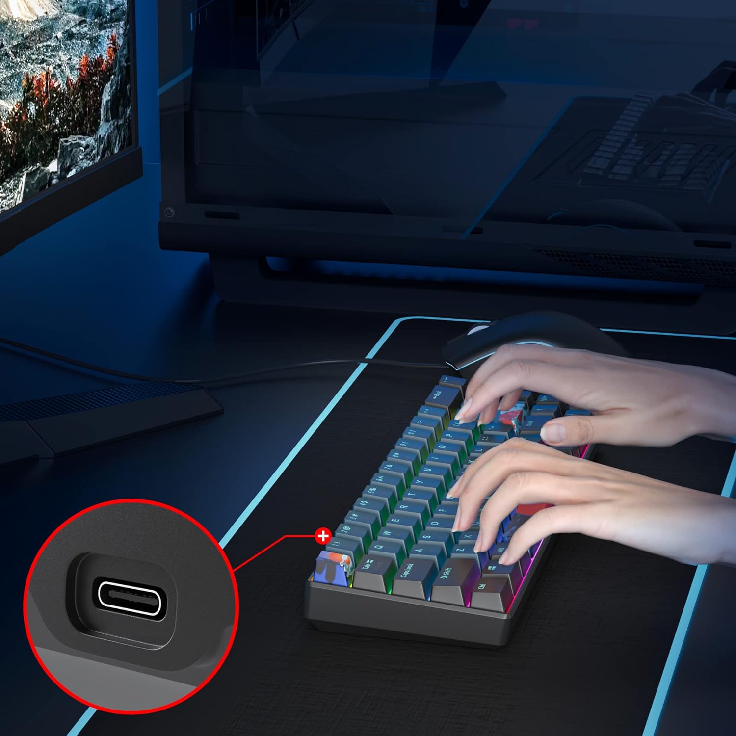 ✿【Quiet Red Switches】Our 65 percent keyboard offering linear feedback, smooth top-to-bottom actuation travel distance. Require less force to press down and the keys feel smoother. It’s best choose for PC Gamers or Office.