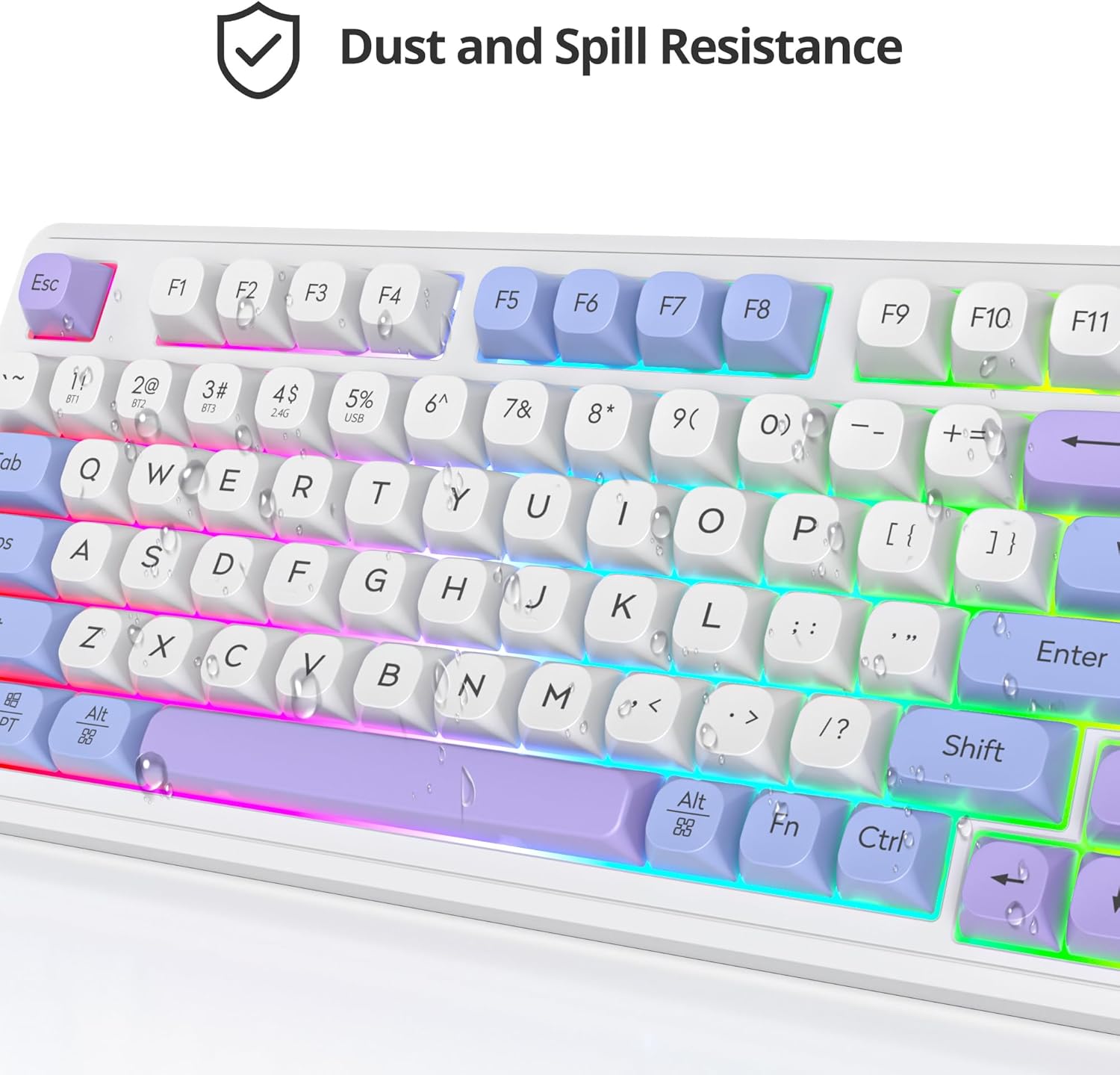 【Tri-Mode Multi-Device Connection】This Membrane keyboard offers flexibility through its three connection modes. With Bluetooth 5.0 and 2.4GHz wireless, you can easily switch between up to three paired devices without cables. It also connects via USB wired mode