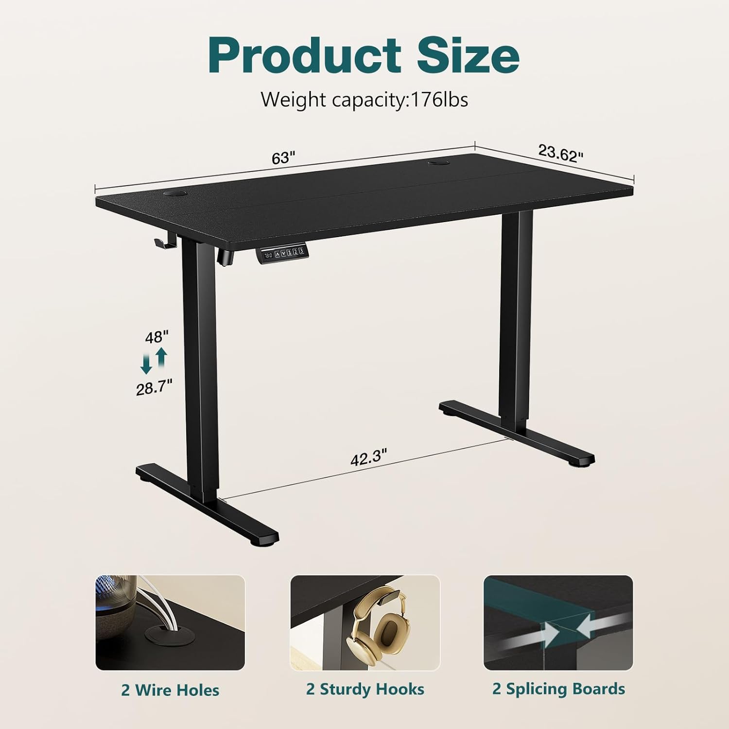Precise & Stable Adjustment: Designed to cater to your needs, our stand up desk design features an LED display and 3 memory presets, helping you make precise and quick adjustments. The robust wooden desktop and the T-shaped steel frame ensure maximum stability and can hold up to 176 lbs.
