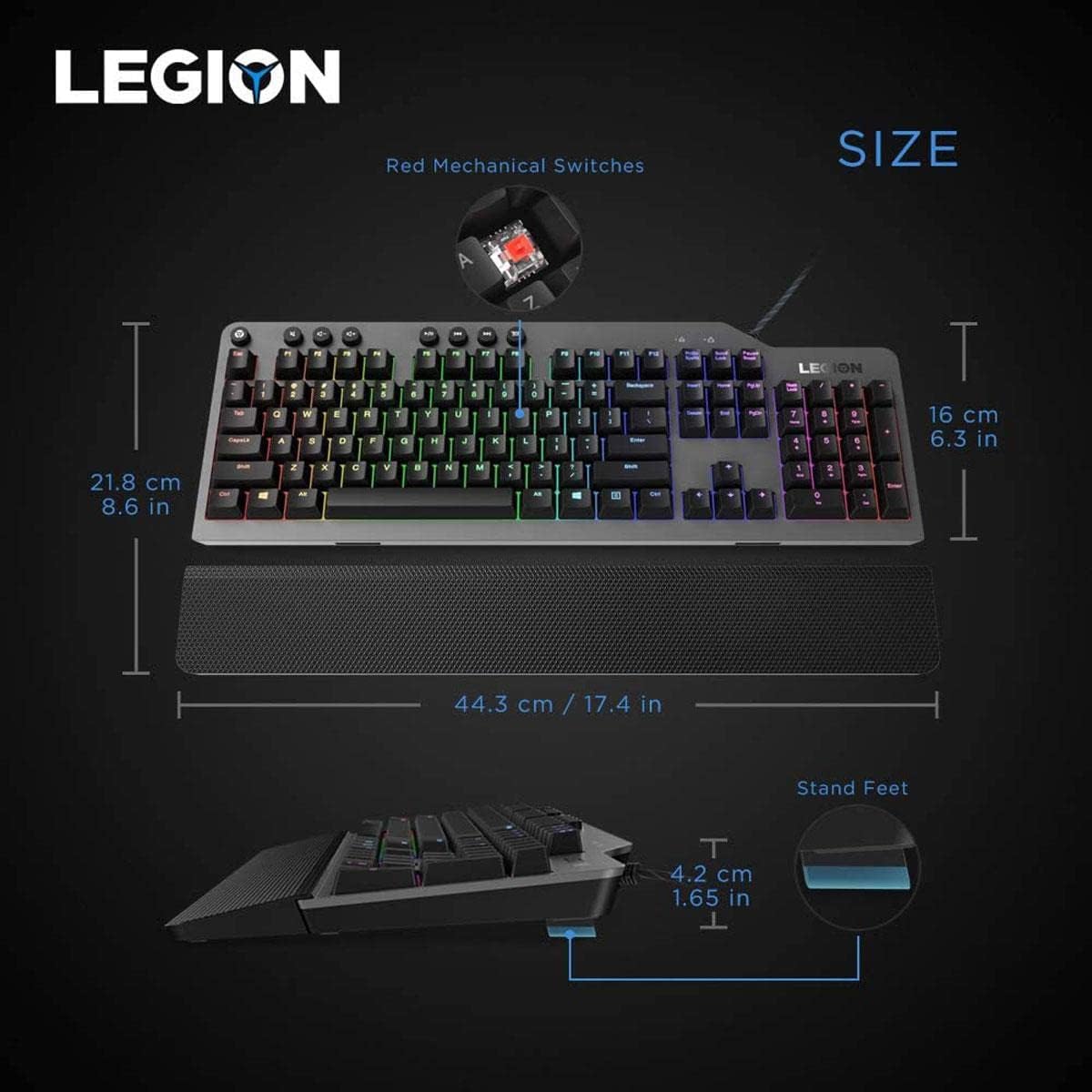 backlight: 16.8 million colors RGB per Key, programmable (need using Legion accessory software)