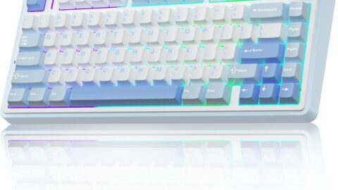 AULA F75 75% Wireless Mechanical Keyboard,Gasket Hot Swappable Custom Keyboard,Pre-lubed Greywood Switch RGB Backlit Gaming Keyboard,2.4GHz/Type-C/BT5.0 Mechanical Keyboard (Salt White Blue)