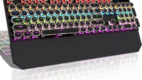 MageGee Typewriter Mechanical Gaming Keyboard, Retro Punk Round Keycaps with RGB Rainbow Backlit USB Wired Keyboards for Game and Office, for Windows Laptop PC Mac – Blue Switches/Black