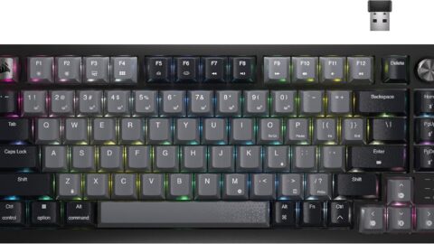 Corsair K65 Plus Wireless 75% RGB Mechanical Gaming Keyboard – Pre-Lubricated MLX Red Linear Switches – PBT Dye-Sub Keycaps – PC, Mac, PS5, PS4, Xbox, iPad – QWERTY NA – Black/Gray