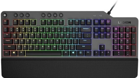 Lenovo GY40T26478 Legion K500 RGB Mechanical Gaming Keyboard, 3 ZONE Full-size Keyboard, 7 user Programmable Hot Keys; 16.8 Million Colors, 50 Million-Click Red Mechanical Keys, Detachable Palm Rest