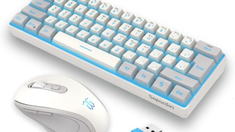 Snpurdiri 2.4G Wireless Gaming Keyboard and Mouse Combo, Include Mini 60% Mechanical Feel RGB Backlit Keyboard, Ergonomic Vertical Feel Small Wireless Mouse(Grey and White)