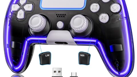 Controller for PS4 with Customizable Button and RGB LED, Wireless P4 Remote Controllers for PlayStation 4 with Hall 3D Joystick and LED Lights, Pro Dual PS4 Shock 4 Control with Paddles (White)