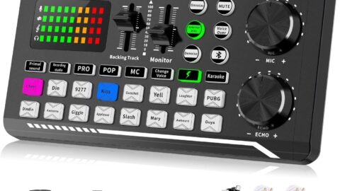Facmogu F998 Live Sound Card Audio Mixer, Podcast Audio Interface with DJ Mixer Effects, Voice Changer with Sound Effects for Karaoke Tiktok YouTube Live Streaming Record Gaming