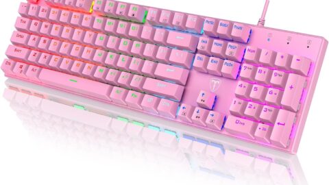 RisoPhy Mechanical Gaming Keyboard, RGB 104 Keys Ultra-Slim Backlit USB Wired Keyboard with Blue Switch, Durable ABS Keycap/Anti-Ghosting/Spill-Resistant Mechanical Keyboard for PC Mac Xbox Gamer,Pink