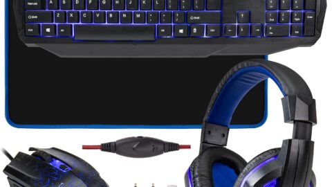 Ritz Gear Gaming Accessories Kit (Blue) | 4-in-1 LED Backlight Bundle PC Combo with Multimedia Keyboard, Optical Mouse, Mouse Pad & Headset with Adapter | for Windows 7+ Desktop, Laptop, Xbox & PS4