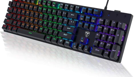 RisoPhy Mechanical Gaming Keyboard, RGB 104 Keys Ultra-Slim LED Backlit USB Wired Keyboard with Blue Switch, Durable Abs Keycaps/Anti-Ghosting/Spill-Resistant Computer Keyboard for PC Mac Xbox Gamer