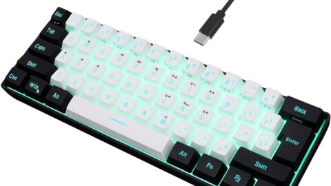 Snpurdiri 60% Wired Gaming Keyboard, RGB Backlit Mini Keyboard, Waterproof Small Ultra-Compact 61 Keys Keyboard for PC/Mac Gamer, Typist, Travel, Easy to Carry on Business Trip(Black-White)