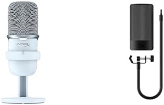 Bundle of HyperX SoloCast – USB Condenser Gaming Microphone, for PC, PS5, PS4, and Mac, Tap-to-Mute Sensor, Cardioid Polar Pattern, White + HyperX Shield Microphone Pop Filter