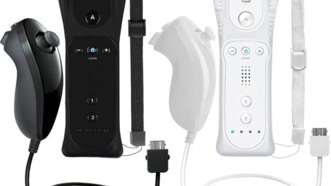 2 Packs Wireless Controller and Nunchuck for Wii and Wii U Console, Gamepad with Silicone Case and Wrist Strap (Black and White)
