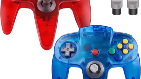 Classic N64 Controller, Wired N64 Controller Upgraded Joystick for N64 Video Game Console (Transparent Red and Transparent Blue)