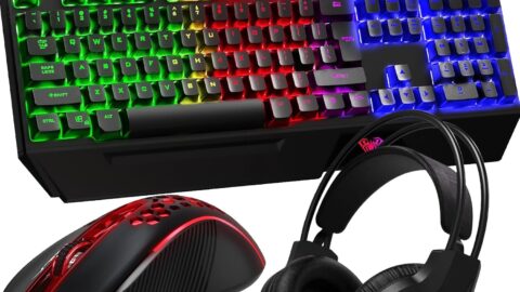 AULA Gaming Keyboard Mouse Headset and Mousepad Combo, RGB LED Backlit Gaming Keyboard Bundle, USB Wired Keyboard Combo for PC Gamer, Xbox, PS4 Users