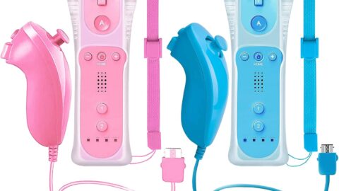 2 Packs Wireless Controller and Nunchuck for Wii and Wii U Console, Gamepad with Silicone Case and Wrist Strap (Pink and Blue)