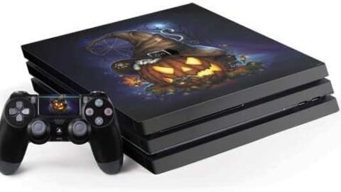 Skinit Decal Gaming Skin Compatible with PS4 Pro Console and Controller Bundle – Officially Licensed Sarah Richter Halloween Cat and Jack O Lantern Pumpkin by Sarah Richter Design
