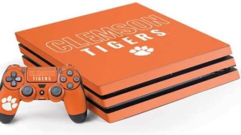 Skinit Decal Gaming Skin Compatible with PS4 Pro Console and Controller Bundle – Officially Licensed College Clemson Tigers Logo Design
