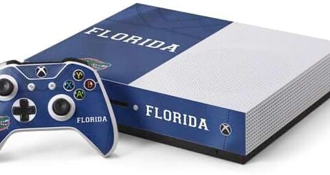 Skinit Decal Gaming Skin Compatible with Xbox One S Console and Controller Bundle – Officially Licensed University of Florida Blue Jersey Design