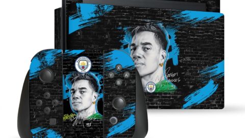 Head Case Designs Officially Licensed Manchester City Man City FC Ederson Moraes Graffiti by Murwalls Vinyl Gaming Skin Decal Compatible With Nintendo Switch Console & Dock & Joy-Con Controller Bundle