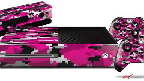 WraptorCamo Digital Camo Hot Pink – Holiday Bundle WraptorSkinz Decal Style Vinyl Skin Wrap compatible with XBOX One Original Console, Kinect and 2 Controllers (GAMING SYSTEM NOT INCLUDED)