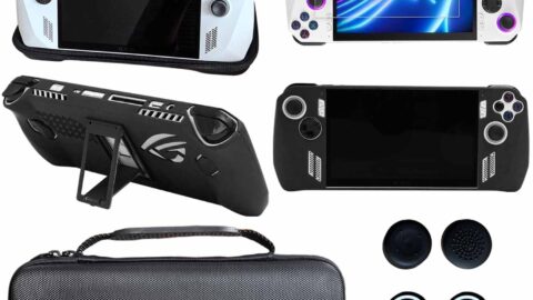 GUTIAL Accessories kit for ASUS ROG Ally 2023 – Black Accessories Bundle for ROG Alloy Gaming Handheld with Carrying Case Protective Cover case and 2 Pack Screen Protector, 6 Thumb Grips