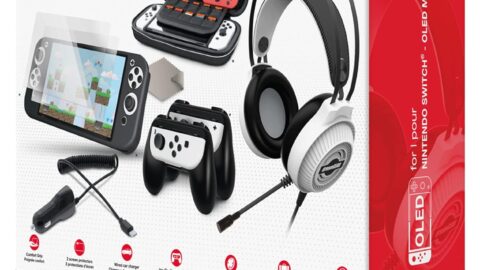Gamers Kit for Nintendo Switch OLED: Wired Gaming Headset with 50mm Drivers, (2)Screen Protectors, Ergonomic Grip, Switch OLED Travel Case, Joy-Con Grips, and Car Charger