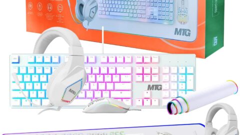 Gaming Kit for PC, RGB Keyboard and Mouse, Gaming Headphone, Large LED Desk Mat with Smooth Surface with RGB Modes for Desktop Computer, Xbox and PS4 Gamers – MTG 4 in 1 Combo