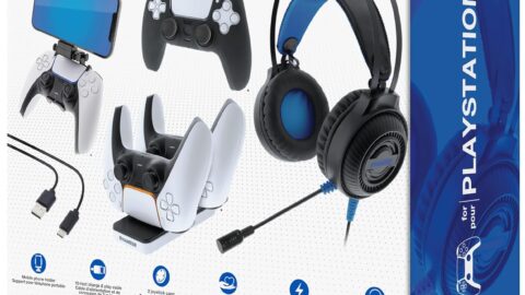 dreamGEAR Gamers Kit for PlayStation 5: Gaming Headset with 50mm Drivers, PS5 Controller Charger, Adjustable Phone Mount, USB-C Cable, Protective Cover and Caps