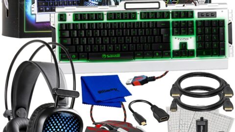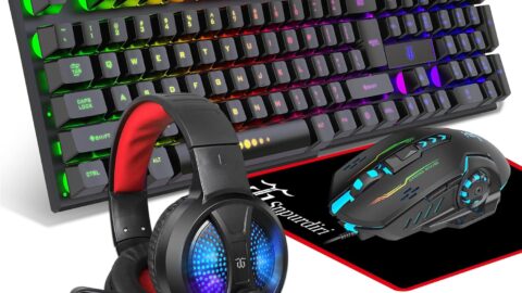 RGB PC Gaming Accessories Combo Kit – Gaming Keyboard and Gaming Mouse Combo – Spill-Proof USB Keyboard, Wired 3-Button Optical Mouse, Stereo Gaming Headset