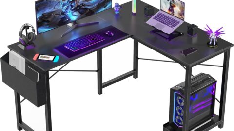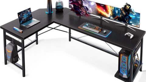 Coleshome 66″ L Shaped Gaming Desk, Corner Computer Desk, Sturdy Home Office Computer Table, Writing Desk, Larger Gaming Desk Workstation, Black