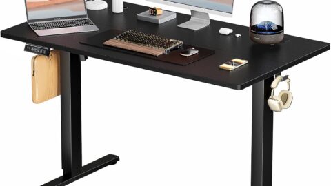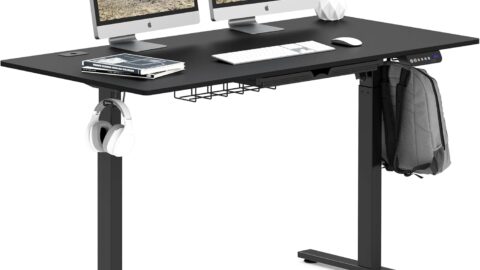SHW 55-Inch Large Electric Height Adjustable Standing Desk with Drawer, 55 x 28 Inches, Black