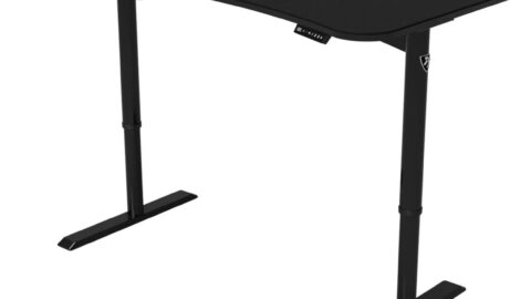 Furmax Height Adjustable Gaming Desk Gamer Table T Shaped with Carbon Fiber Surface Computer PC Desk with Full Covered Mouse Pad, Cup Holder & Headphone Hook, Black (47 Inch)