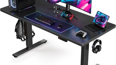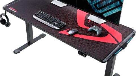EUREKA ERGONOMIC 65 inch Electric Height Adjustable Gaming Desk Standing Desk, Large Gaming Computer Desk with RGB LED Lights and Extended Gaming Mouse mat for Gaming and Home Office,Black