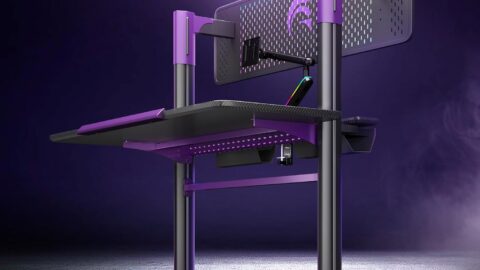 G Series Gaming Desk, Gaming Computer Desk with RGB LED Lights | RGB Monitor Stand | Pegboard | Ergonomic Gamer Desk with Power Outlets | Cable Management System | Storage | Black Purple