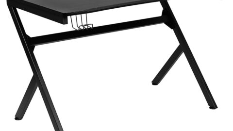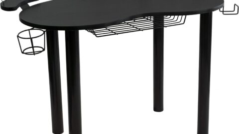 Flash Furniture Duncan Gaming Desk 45.25″ x 29″ Computer Table Gamer Workstation with Headphone Holder and 2 Cable Management Holes, Set of 1,Black