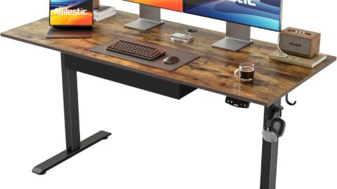 Adjustable Height Electric Standing Desk with Storage Wooden Drawer, 55 x 24 Inches Stand Up Home Office Computer Gaming Table for Work Office Home, Rustic Brown