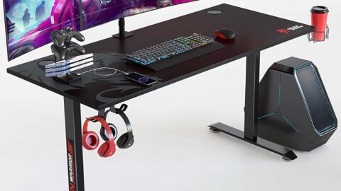 TOPSKY Gaming Desk Large Surface 63’’x31.5’’ with Cup Holder, Headphone Hook and Cable Management (Black)