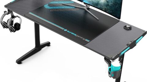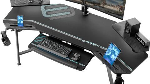 EUREKA ERGONOMIC Gaming Desk 55 Inch,PC Gaming Table, X Shaped Gaming Computer Desk with Mouse Pad, Carbon Fiber Home Office Gamer Desk with Cup Holder & Headphone Hook & Controller Stand,Black