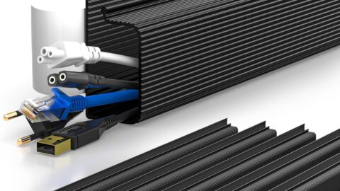 EVEO Cable Management Under Desk Kit (6 Units)-Under Desk Cable Management Cord Cover,Cable Hider Cord Management Under Desk Cable Organizer Self-Adhesive Cord Organizer Tray-96”JChannel 6X16 -Black