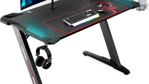 EUREKA ERGONOMIC Z1-S Pro Gaming Desk 44.5″ Z Shaped Home Office PC Computer Desks Gamer Tables with LED Lights Controller Stand Cup Holder Headphone Hook Free Mousepad for Men Boyfriend Female Gift