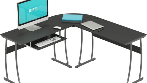 RIF6 L Shaped Modern Computer Home Office Gaming Desk with Keyboard Tray and Cable Management, Easy Assembly, Black