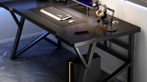 40/47/55 Inch K-Shaped Gaming Desk with K-Shaped Steel Legs,Gamer Desk with Cable Management Hole, Writing Desk with Wide Gaming Desktop for Bedroom, Study Room Black 120cm